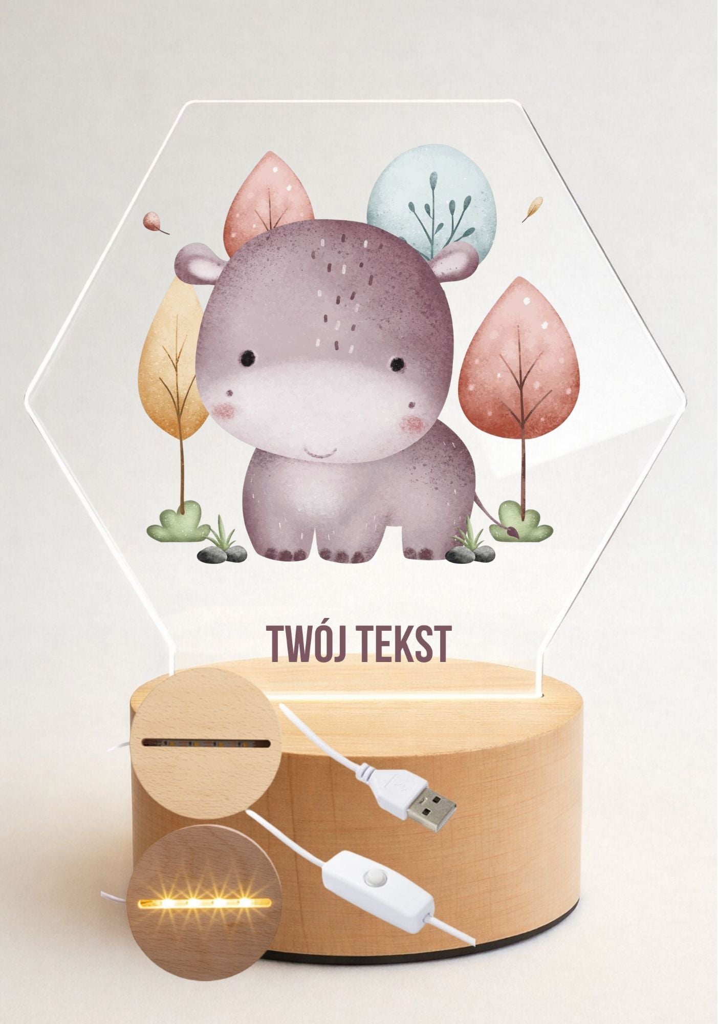 Nowoczesna i stylowa lampka LED z przezroczystej plexi, idealna jako prezent lub wyjątkowa dekoracja pokoju dziecięcego. Każdy wzór wykonywany jest z dbałością o detale, a neutralne światło LED tworzy przyjemny, nastrojowy klimat.