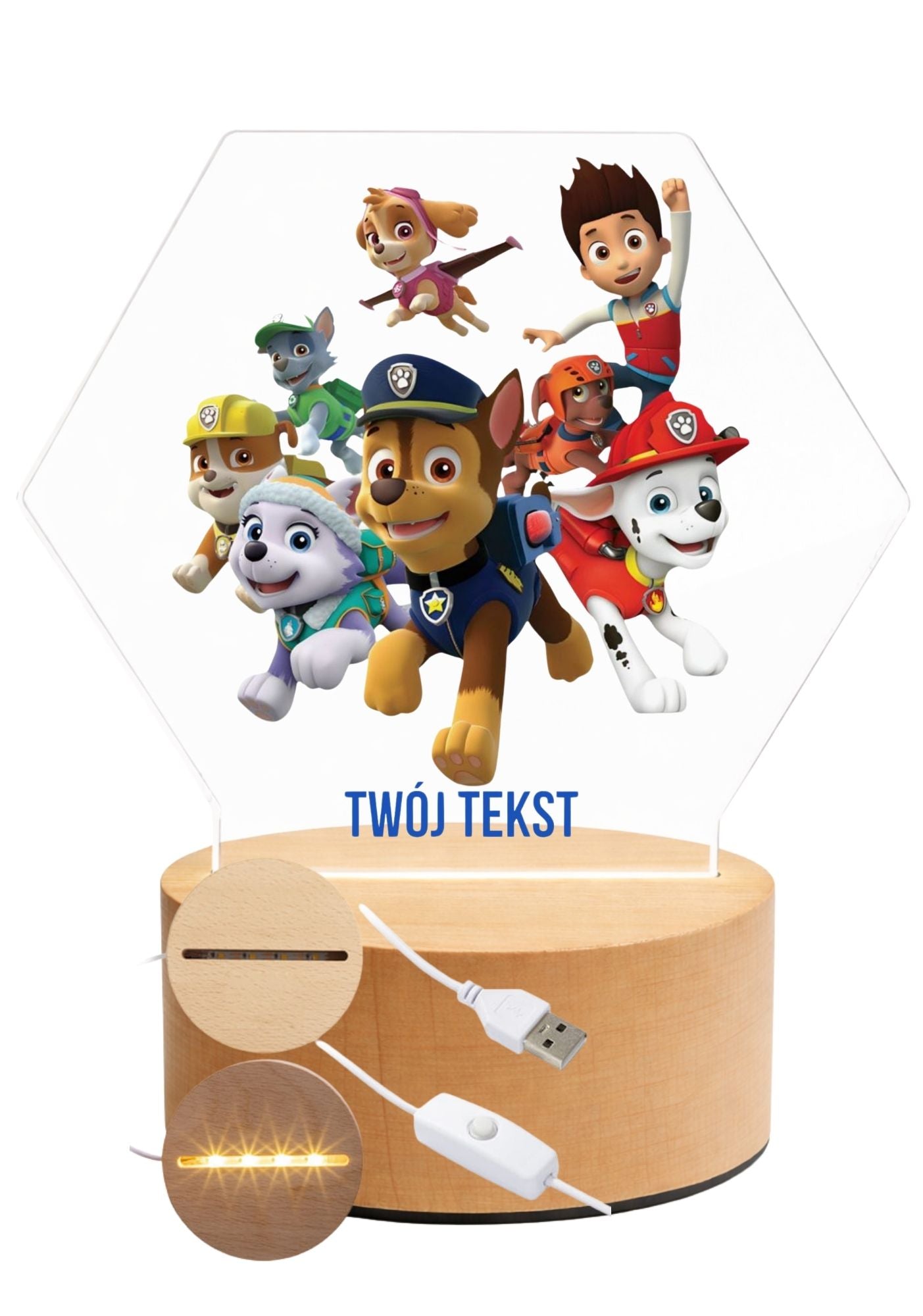 Nowoczesna i stylowa lampka LED z przezroczystej plexi, idealna jako prezent lub wyjątkowa dekoracja pokoju dziecięcego. Każdy wzór wykonywany jest z dbałością o detale, a neutralne światło LED tworzy przyjemny, nastrojowy klimat.
