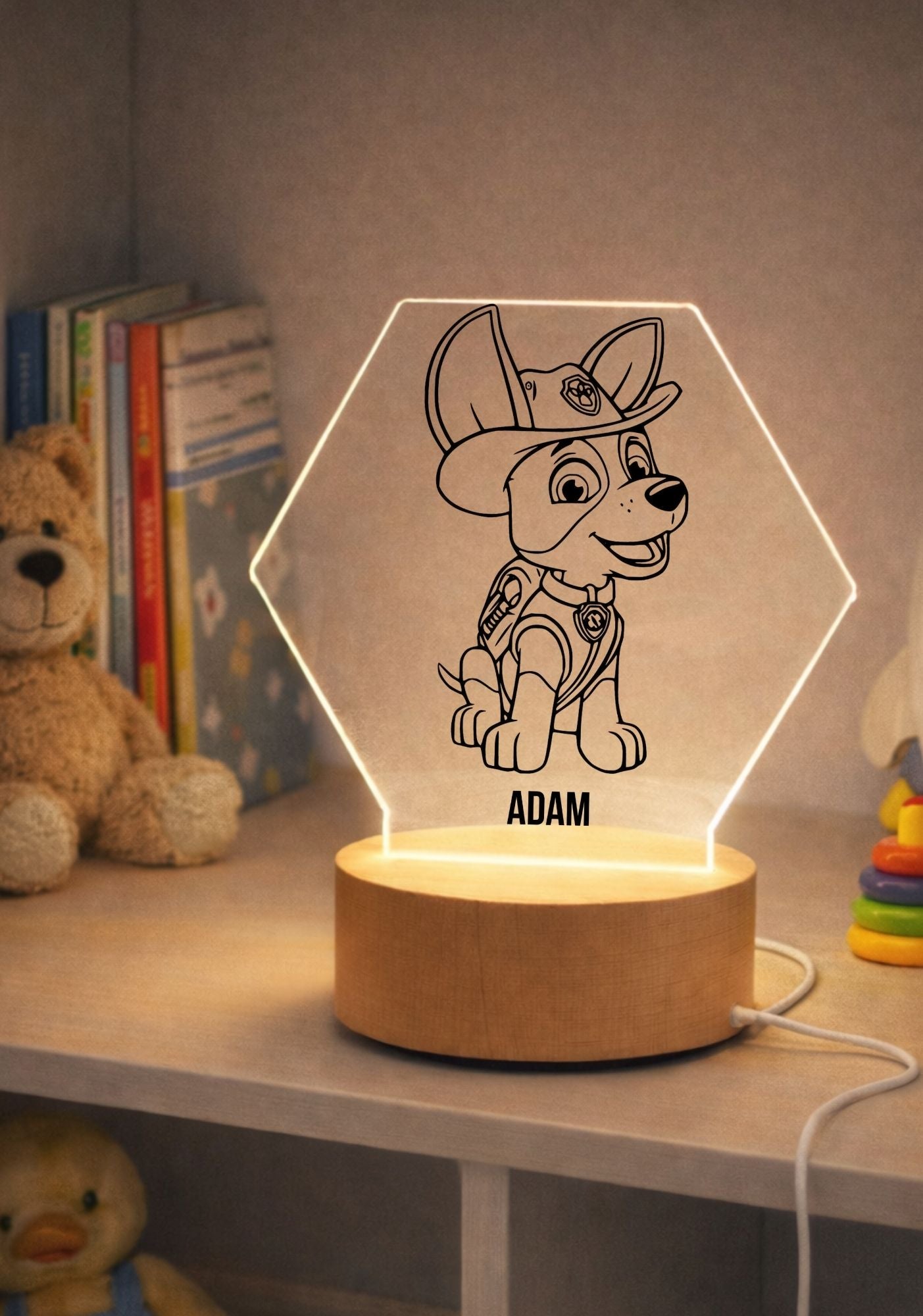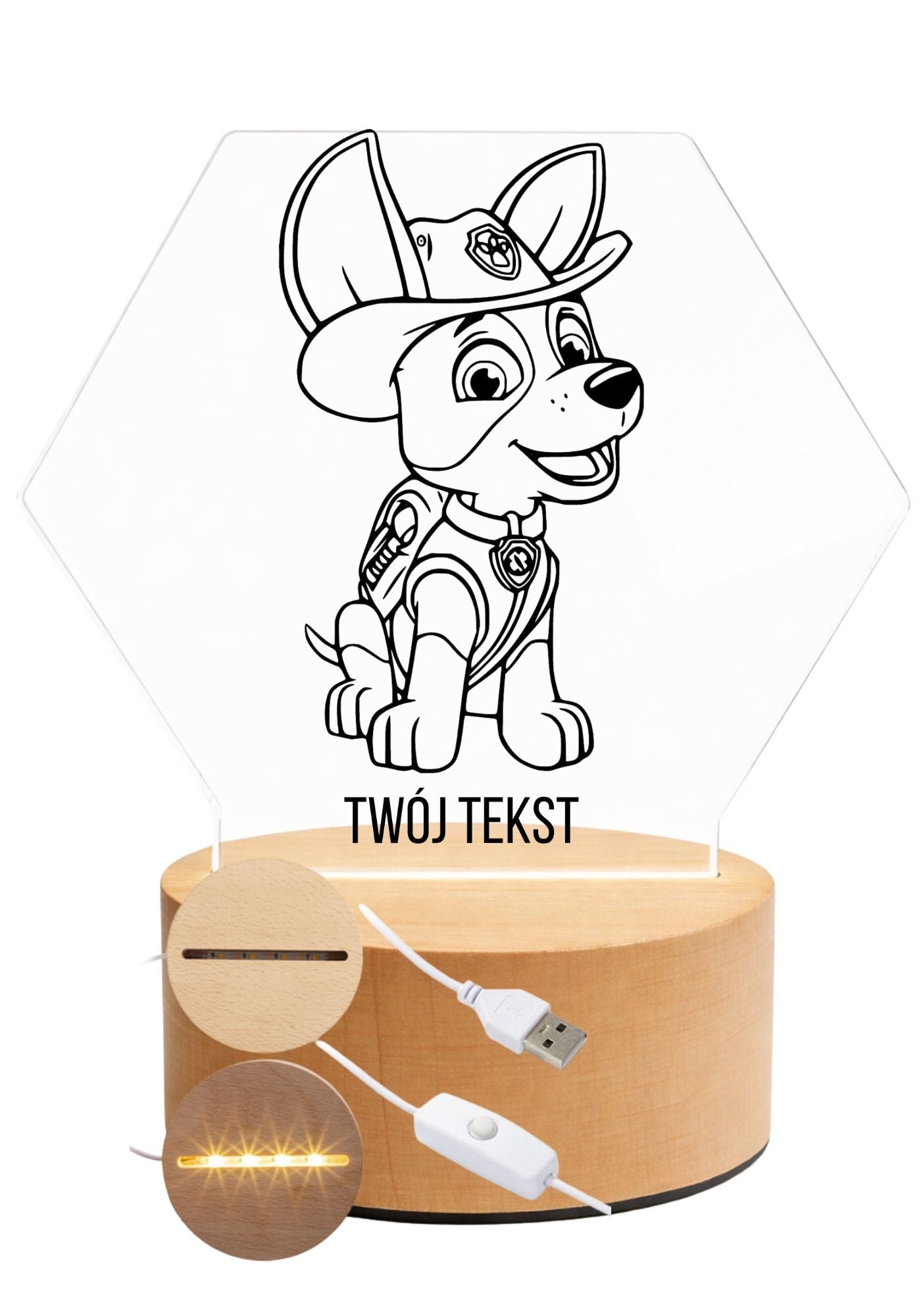 Nowoczesna i stylowa lampka LED z przezroczystej plexi, idealna jako prezent lub wyjątkowa dekoracja pokoju dziecięcego. Każdy wzór wykonywany jest z dbałością o detale, a neutralne światło LED tworzy przyjemny, nastrojowy klimat.