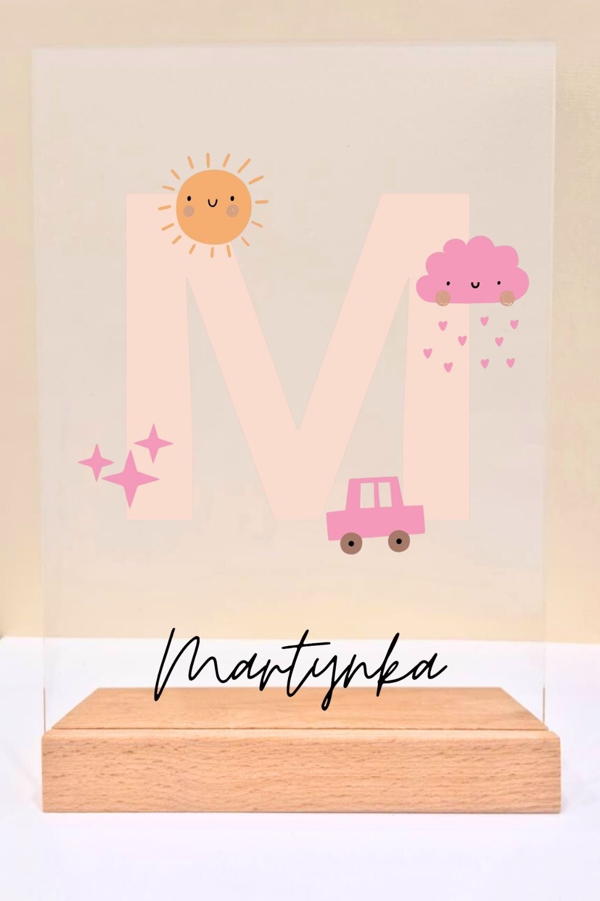 - Plexi: 21 x 15 cm, grubość 3 mm • Drewniana podstawa: 6,7 x 15 x 2,3 cm